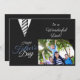 Fira fars dag med ett stilig fotokort som detta. Svart kostym och slips med "Glad fars dag"-text under det till vänster. "Till en underbar pappa!"-textmall ovanför en fotomall till höger. Plus en hälsningstextmall på baksidan!