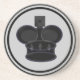 Svart kustfartyg för runda för kungschackbiet. Gör en schacklek att stiga ombord med denna stilfulla kustfartyg för drinken för schackbietsymbolet, köp allt schack som den delara klistermärken täcker (16 delar av varje färg, 32 i slutsumma: en kung, en drottning, två råkor, två riddare, två bishops och åtta pantsätter) för att göra din egna schacklek!