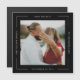Det här moderna och minimala Spara datumfotokortet har en svart gräns med vit text med alla kortdetaljer som ramar fotot. Kvadratens storleka framträder och gör ett stänk på ett klassiskt och elegant sätt. Detta magnetkort med kuvert är en underbar påminnelse om ditt bröllop-datum.