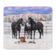 En familj av svarta kvartshästar i deras vinterranchkorral.