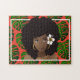Svart kvinna, blomma i hårkanten, tropiska Löv, rö Pussel