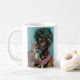 Svart kvinna med katt kaffemugg