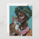 Svart kvinna med katt vykort