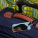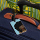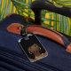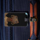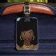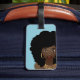 Den här bagagemärkningen har en afrikansk amerikansk kvinna med fullt afro och rött läppar på turkobakgrunden. Lämna bagageanspråket med bagagetaggen.