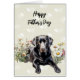 Grattis på fars dag från hunden. Svart labrador i vildblommor design med bakgrund hjärtan mönster. Skapa ett personligt meddelande inuti. Använd liknande exempeltext som är för pappa från hunden, eller ändra den till att vara från barnen eller familjen.