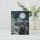 Svart labrador retriever i snöig jul som ställer in under en fullmånehelgdagvykort