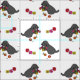 Gullig och söt svart Labrador tecknaddesign med blommor. Underbara roliga gåvor för hund älskare som älskar svart Labradors! En förtjusande svart Labrador valp tittar tillbaka med färgrika rosor och röda daisy i basketen. Blom- design. Stollig och den roliga Labrador retrieveren förföljer tecknaden som skapas av Naomi Ochiai från Japan.