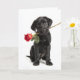 Fira Alla hjärtans dag med detta hjärtsmältande kort med en svart labrador retriever som visar upp en söt Lab-valp som håller en enda röd ros. Kända för sin lojalitet, sötma och gränslösa kärlek är svarta labradorer den perfekta symbolen för hängivenhet och hjärtlig anknytning.