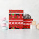 Svart Labrador jul som slår in papper som inspireras av det fula jultröjamönster. Silhouetten för den Labrador retrieveren/skisserar designen som skapas av Naomi Ochiai från Japan.