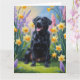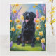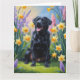 Svart Labrador Hund Vårblommor Målning Kort