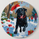 Svart Labrador Jul Festiv Snö Scen Knapp