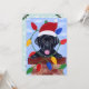 Whimsy och rolig Labrador Retriever-målning målad av Naomi Ochiai från Japan. En bedårande svart labradorvalp dyker upp ur skorstenen. :) Tomtehatt på huvudet. Svarta Labrador-valp Julkort och presenter för hundälskare som älskar svarta labradorer!! Du kan anpassa texten och mer!