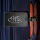 Svart läderbakgrund med monogrammat bagagemärke bagagebricka