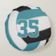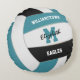 Det här sportetiska laget färg volleyball runtom i dekorativ kudde ger en bild av en realistisk tittar teal, svart och vit volleyball som du kan anpassa spelarens namn, monogram eller varierande brev, lag och mascot namn på framsidan och ett jersey-nummer på baksidan - av katz_d_zynes