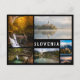 Kollagekort för olika landskap runt Bled som Sjö Bled, Sjö Bohinj och Vintgar Gorge i Slovenien med svart ram och texten: "Slovenien".