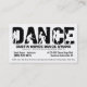 Perfekt för dansinstruktören som fungerar en dansstudio. Den djärva svartvita moderna stilvisitkorten som presenterar DANS i stora brev för grungestilkvarter med den omvända silhouetten, figurerar insida breven som utför olika dansflyttningar. Lätt att läsa svart text på vitbakgrund med flera fullständigt skräddarsy textområden upplysningsvis.