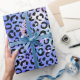 Detta gulliga och unika svart leopardtryck är på en härlig havsblått, och lilavattenfärgen målar bakgrund. Denna design är perfekt för den moderiktiga och stilfulla kvinnan.