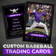 Denna snygga och moderna baseball-kortmall är perfekt för att visa din favoritspelares statistik och prestationer. Med sin svarta och lila färgskala kommer den säkert att sticka ut från mängden. Anpassa den med din spelares namn, bild och statistik för att skapa ett verkligt unikt och minnesvärt kort. Detta gör en bra present till alla baseball-fan eller spelare.