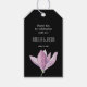 Personliga presentetiketter med en vacker lila magnoliablomma och din text i chic vit bokstav på svart bakgrund med ditt personliga meddelande på baksidan. MATCHANDE ARTIKLAR i vår butik.