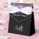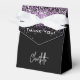 En elegant och glamourös födelsedag eller milstolpe. En svart bakgrund med lila falskt glitter, gnistor. Med texten: Tack! Personlig och lägg till ditt namn. Vita bokstäver. Namnet skrivs med en trendig handskriven stilsnack.