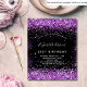 Observera att inbjudan är papper och mycket tunn. Kuvert ingår inte. Om du vill ha mer omfattande inbjudningar (samma design) kan du besöka vår butik. En modern, snyggt och glamorös inbjudan till en 21:a (eller vilken ålder som helst) födelsedagsfest. En svart bakgrund med lila faux glitter stoft. Namn är skrivet med ett modernt handskript i stil. Anpassa och lägg till information om party.