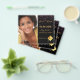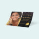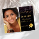 Observera att det här Spara datumet är pappert och mycket tunt. Kuvert ingår inte. Om du vill ha tjockare Spara datumkort (samma design) kan du besöka vår butik. Ett foto Spara datumet för en studentfest. På framsidan: Lägg till ett eget lodrät storlekt foto av student. En chic svart bakgrund färg och lila konetti sprinkle. Mallar för namn och datum. Golden brev. Namn och texten: Spara datumet är skrivna med ett modernt handskript i stil. Med en modern abstrakt-faux-guld-överdrag, tassel-topper. Tillbaka: Information om party.