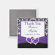 Denna svart-vita damastig bröllopsgåva tack-magnet har ett lila UTRYCKT band med ett par UTRYCKTA diamantjuveler och FALSK glitter ihopkopplade hjärtan som matchar bröllopsinbjudan nedan. Texten är anpassningsbar så att du kan ändra den till "Spara datumet" och skicka den för att meddela ditt kommande bröllop. Om du behöver andra matchande föremål i denna design, vänligen maila din förfrågan till niteowlstudio@gmail.com.