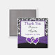 Denna svart-vita damast bröllopsfavorit tack-magnet har ett lila UTRYCKT band med ett par UTRYCKTA diamantjuveler och FALSK glittersammansatta hjärtan som matchar bröllopsinbjudan nedan. Texten är anpassningsbar så att du kan ändra den till "Spara datumet" och skicka den för att meddela ditt kommande bröllop. Om du behöver andra matchande föremål i denna design, vänligen maila din förfrågan till niteowlstudio@gmail.com.