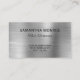 Skapa dina egna dekorativa affärskort för logotyp för små företag med plats för ett mobilt nummer och en webbplats-URL på framsidan och mer kontaktinformation på baksidan. Anpassa teckensnittet stilar för att matcha logotypen. Bakgrunden har ett faux silver-borstat metall-folie för digital konst. Anpassa elegantens kalligrafi och det moderna teckensnittet stil eller svart färg i personligen efter behov för att matcha logotypens bild.