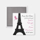 Dåliga nyanser av rosa, finare Fransk-skript och en vacker silhuett av Eiffel Torn accentuerar romantik i din parisiska temathändelse med denna Spara datumet. Det ingår i fullt-linjen Love birds (svart) och finns även som kort.