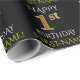 Den här pappra designen innehåller ett meddelande som "LYCKLIG 1:a BIRTHDAY", där "1:a" har ett utseende av faux/imitation guld. Den har också en personlig namn och en svart färgad. Det kan kanske användas när man slår in gåvor som ges till någons första födelsedag. [~Z0000130]