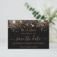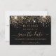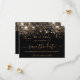 Ett giftigt och trendig Spara datumkortet för en födelsedagsfest. En svart bakgrund dekorerad med faux guld glitter, gnistor. Anpassa och lägg till ett datum och namn. Golden färgad brev. Texten: Spara datumet skrivs med ett stort trendig-handskript i stil med dekortecken.
