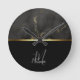 Svart marmor guldmonogram rund klocka