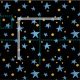 Vackra svarta textilier med mönster av blå stjärnor och gult cirklar. Underbar struktur för projekt för att dämpa och lapptäcke. Använda det för dina hembåtsprojekt som kuddar, kläder eller leksaker. Unik design som du inte hittar någon annanstans. Illustrerad och designad av Patricia Alvarez.