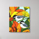 Svart med Chickadee och Lily Flowers Canvastryck