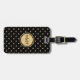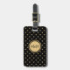 Den här söta bagagetaggen har en svart bakgrund med en guld-hjärtan mönster. Du kan anpassa den på framsidan med ditt monogram inuti en svart och guld-cirkel genom att använda länken "Anpassa den här mallen". På baksidan finns ditt namn i ett söt-skript och adress och mobilt # i ett vanligt teckensnitt.