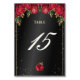 Svart med Röd ros Quinceañera Bordsnummer