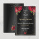 Elegant Black Background med Röd ros och Guld accents Quinceañera Spara datumkort. Anpassa enkelt informationen om den här kvitten och du har din egen anpassningsbar gjort att spara datumkorten för att matcha ditt quinceañera-tema! Visa vår Black med Röd ros Quinceañera Collection för att du har komplimenterat och matchat dekoration för din quince Años firande. Guarde la fecha negras con rosas rojas para quince años.