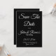 Meddela din speciella dag i tidlös stil med detta eleganta svarta "Save the Date"-kort med klassisk vit skrivstil. Designat för par som älskar modern sofistikation med en touch av romantik, gör detta minimalistiska svart-vita bröllopskort ett djärvt men raffinerat första intryck.