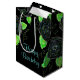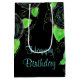 Fläktad presentsäck i svart och en bit teal. Grattis på födelsedagen-texten kan vara personlig vid ett särskilt tillfälle eller lägga till ett namn för att göra din gåva till ge extra speciell. Den svarta bakgrunden kan anpassas till din egen favorit färg. Modern designers pappra presentväska.