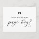 Söt Parisian-temasidpojke frieri kort. Be familj och vänner att vara med i bröllop med den här personligen "Kommer du att vara min sidopojke"-kort. Den har en svart båge och ett skript för elegant. Anpassa genom att lägga till ett namn och ett meddelande