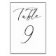 Bord 9. bordsnummer i elegant med svartminimalistiskt skript. Detta svarta och vita bordsnummer är perfekt för bröllop, studenten, babyduschar, möhippor och andra evenemang. Andra nummer och färg finns tillgängliga.