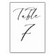 Bord 7. bordsnummer i elegant med svartminimalistiskt skript. Detta svarta och vita bordsnummer är perfekt för bröllop, studenten, babyduschar, möhippor och andra evenemang. Andra nummer och färg finns tillgängliga.