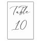 Bord 10. bordsnummer i elegant med svartminimalistiskt skript. Detta svarta och vita bordsnummer är perfekt för bröllop, studenten, babyduschar, möhippor och andra evenemang. Andra nummer och färg finns tillgängliga.