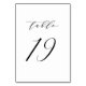 Bord 19. bordsnummer i elegant med svartminimalistiskt skript. Detta svarta och vita bordsnummer är perfekt för bröllop, studenten, babyduschar, möhippor och andra evenemang. Andra nummer och färg finns tillgängliga.
