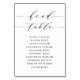 Planen för bordsnummer av anpassade. Den har ett svart, vismiskt skript och klassisk typografi. Anpassa genom att lägga till egna detaljer. Denna minimalistiska sittplan för bord är perfekt för bröllop, babyduschar, möhippor, födelsedagar och mycket annat.