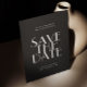 Skapa ett slående första intryck med det här svarta "save the date"-bröllopskortet, designat för par som älskar modern enkelhet med en dramatisk kant. Framsidan har en djärv, minimalistisk typografi mot en djupsvart bakgrund, vilket skapar en förfinad och modern utseende som omedelbart sätter tonen för din fest. Baksidan har plats för ett favoritfoto tillsammans med er bröllopswebbplats och QR-kod, vilket gör det enkelt för gästerna att få tillgång till detaljer, reseinformation och uppdateringar med en skanning. Perfekt för stadbröllop, kvällsevent och moderna lokaler. Denna design passar vackert med snygga, monokroma eller minimalistiska bröllopsestetik. Personalisera med era namn, datum, plats, foto och anpassad länk för att skapa ett polerat och minnesvärt meddelande som