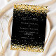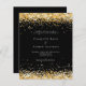 En modern bröllopsinbjudan. Svart bakgrund dekorerad med falskt guldkonfetti. Personifiera och lägg till era namn och bröllopsdetaljer. Bokstäver i vit färg.