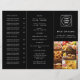Visa dina rätter med denna svarta moderna restaurangfotomenu, designad för takeout, leverans eller cateringservice. Anpassa med ditt restaurangnamn, matfoton och logotyp för att skapa en snygg och professionell meny som dina kunder kommer att älska. Perfekt för moderna restauranger, kaféer och matverksamheter.