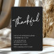 Gör ett djärvt påstående med den här svarta, moderna, tacksamma Thanksgivingens middagsinbjudan. Den här minimalistiska utformningen har en djup svart bakgrund med ett snyggt vitt kalligrafiskt skript och är perfekt för att vara värd för en elegant Thanksgiving middag, chic Friendsgiving party eller modern fallsamling. Den högkontrast svarta och vita designen erbjuder en sofistikerad vrid på traditionella Thanksgivingar, skapar den perfekt för dem som kärlek en contemporary och snyggt firande. Anpassa enkelt dina middagsdetaljer och ange tonen för en natt av tacksamhet och tillsammans. 5 x 7-tums utskriven inbjudan med rundade hörn Svart bakgrund med vitt "Thankful"-skript Modern minimalist stil, fullt-anpassade Matchningsomslag tillgänglig Perfekt för elegant dinners, Friendsgiving eller fall party